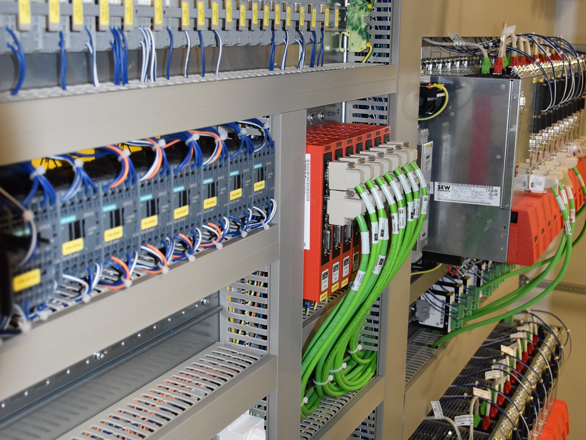Der Schaltschrank ist mit umfangreicher Antriebs-,Sicherheits- und Steuerungstechnik ausgestattet.